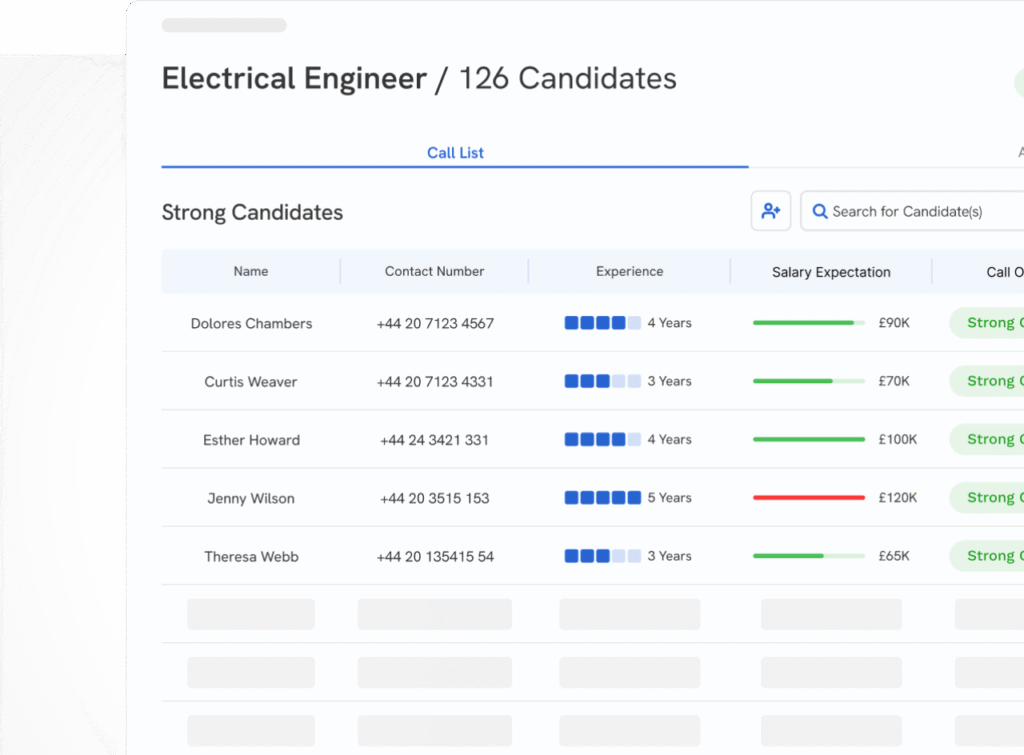 Upload your CVs: our AI handles the details and makes hundreds of calls at once to get you exactly what you need.
